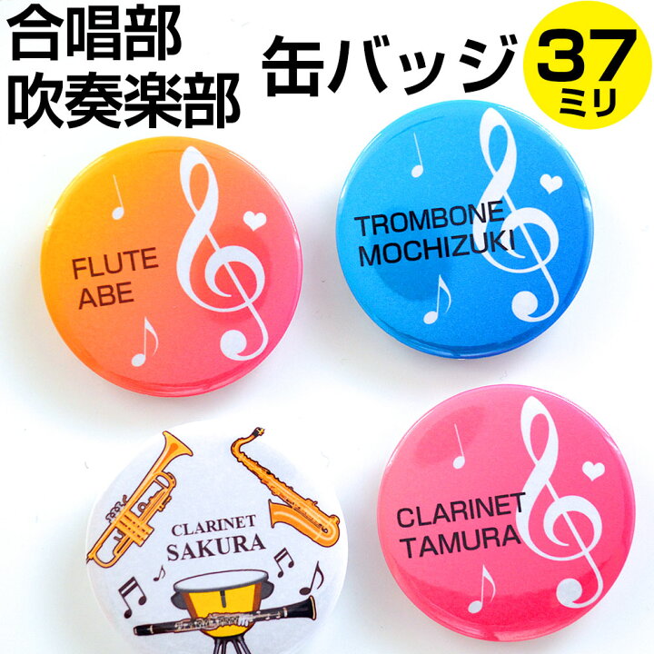 楽天市場 卒業 卒団 卒園 記念品 オリジナル 名入れ 缶バッジ 音楽 合唱部 吹奏楽部 ブラスバンド部 卒業記念品 名入れ 1個から 名入れ 部活 ネーム 名入れ プレゼント 缶バッチ プチギフト 37ミリ 謝恩会 ギフト 参加賞 sutekina ステキナ
